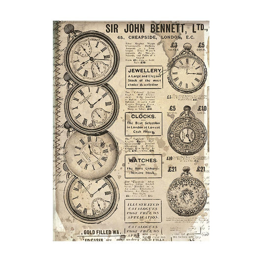 Stamperia - Rice Paper - 21cm x 29.7cm - A4 - Brocante Antiques clocks