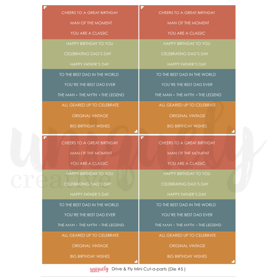 UNIQUELY CREATIVE - DRIVE & FLY MINI CUT -A PART SHEET